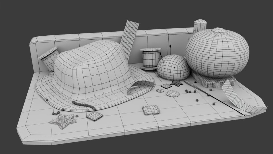 The modeling was done in maya and my first time using 3D coat to texture all of the objects. There is no lighting only diffuse maps shown with baked lighting that I hand painted onto the models